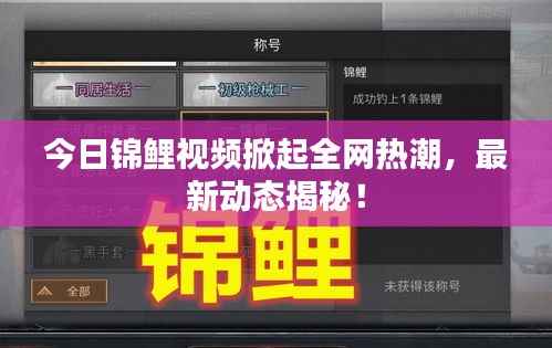 今日锦鲤视频最新消息揭秘